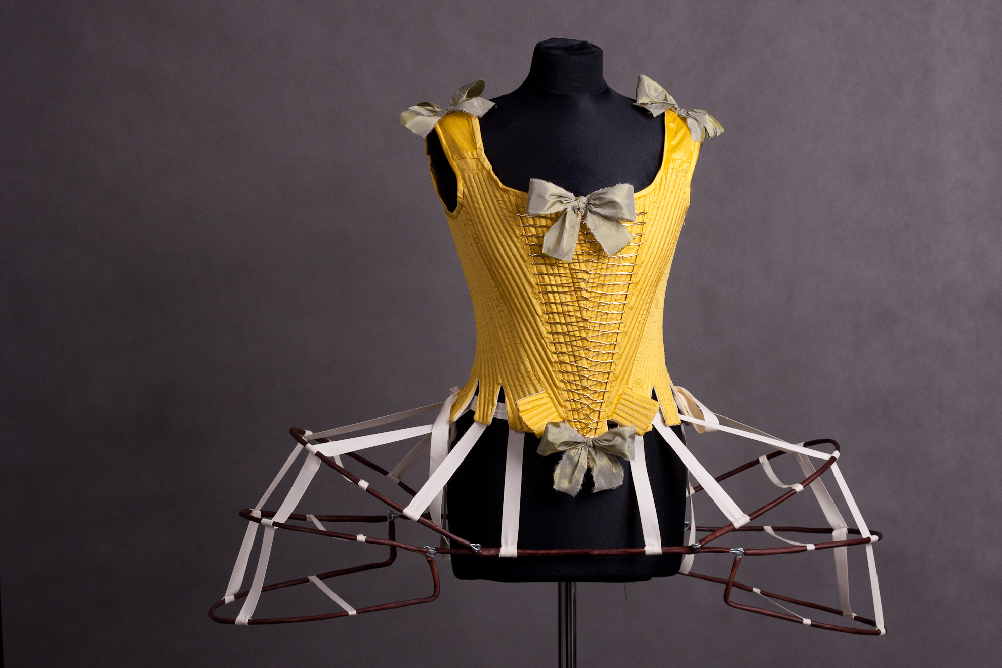 Zestaw bielizny XVIII- wiecznej elegantki, elementy niezbędne aby nadać ciału i sukni odpowiedni dla panującej mody wygląd.
